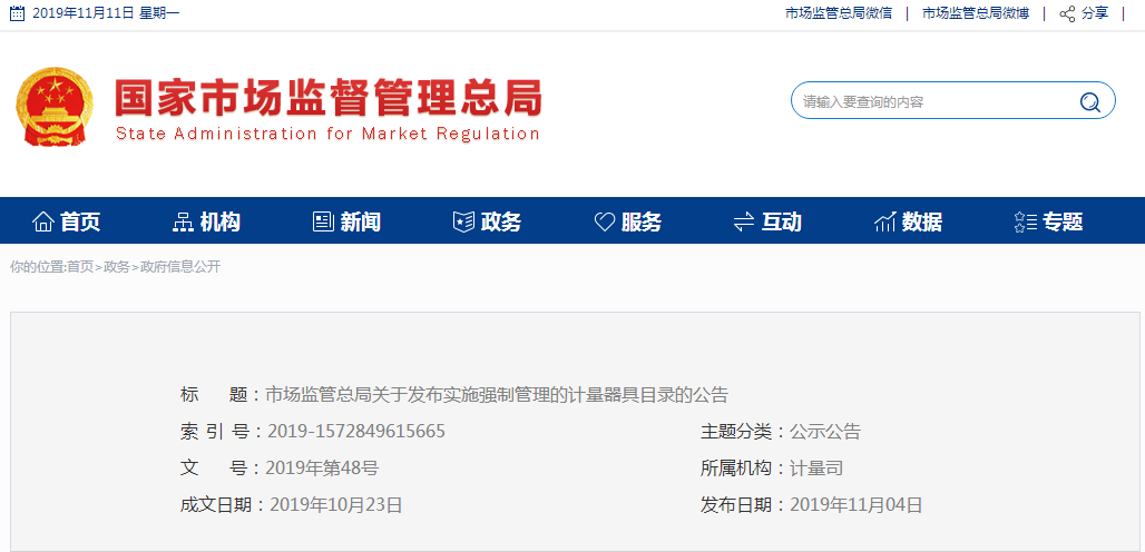 市場監(jiān)管總局關于發(fā)布實施強制管理的計量器具