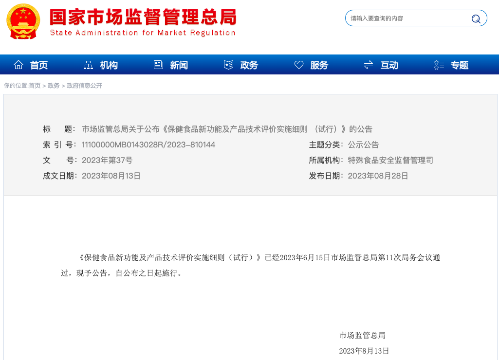 重磅!國家市場總局發(fā)布《保健食品新功能技術