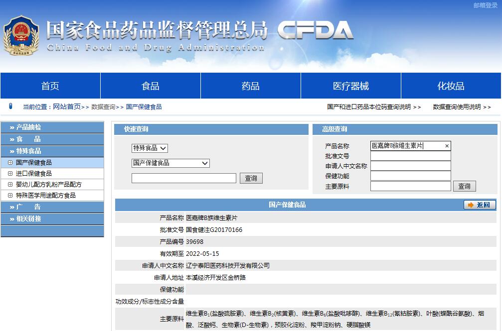 另外還可以直接到國家局的網(wǎng)站直接查詢,比如醫(yī)嘉牌B族維生素片。